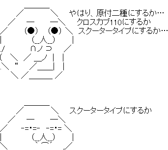 クロスカブ110にしようか、それとも原付二種のスクーターにするか迷った。