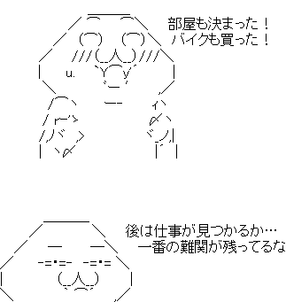 これでアパートも決まったし、バイクも買った。